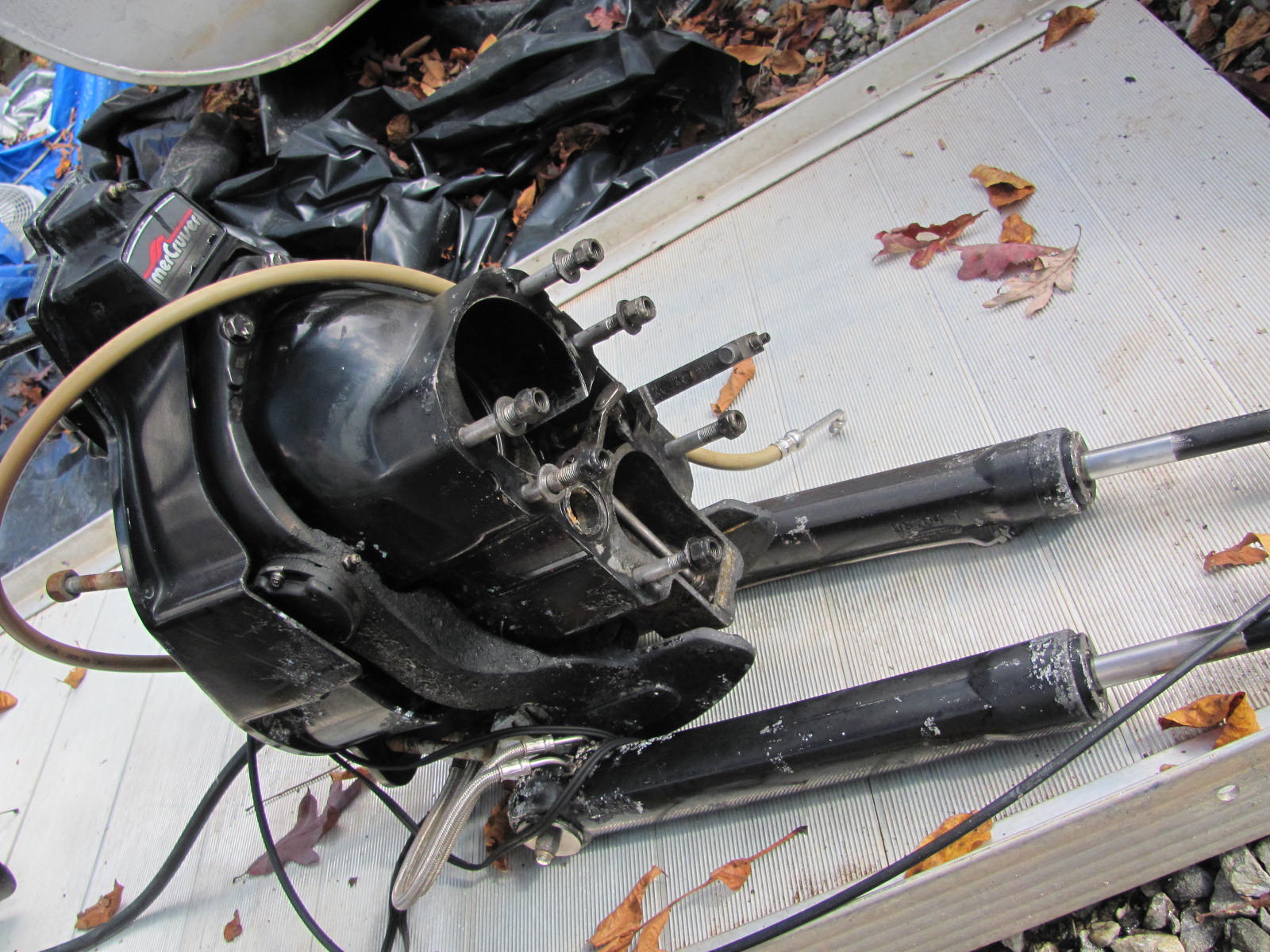 Mercruiser Alpha One 1988 Transom Plate, Gimbal Ring, Bell Housing, Trim Cylinders, Hoses, Shift Cable